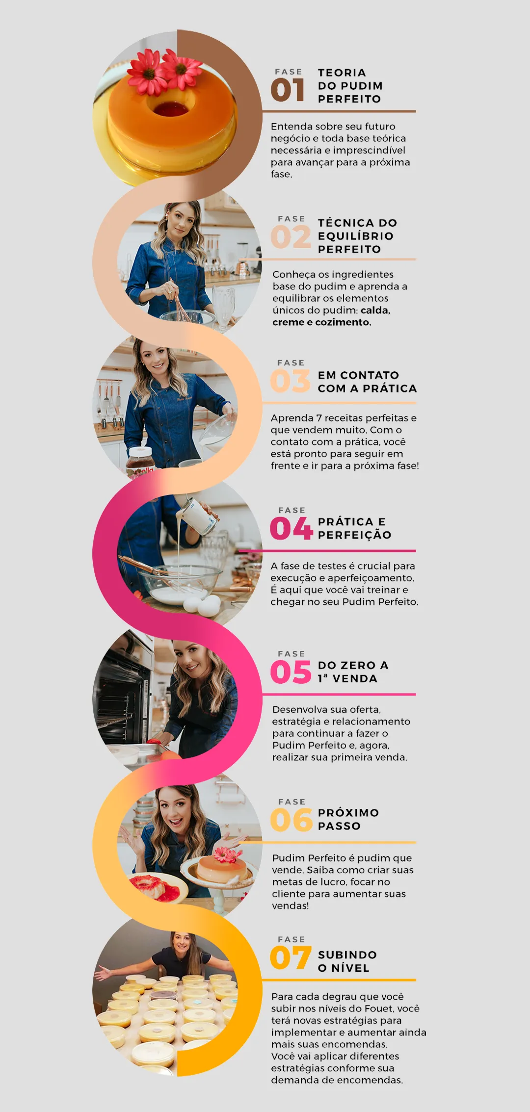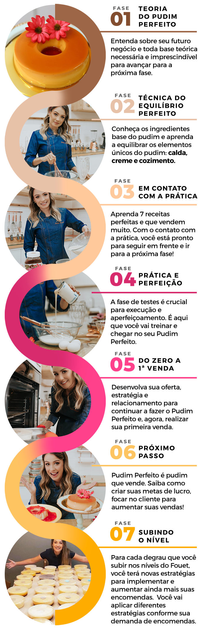 Veja o passo a passo das fases do curso Pudim Perfeito: