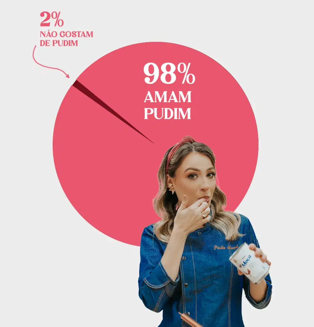 A Priscila tem mais de 9 mil alunos e já transformou a vida de milhares de pessoas com seu curso Pudim Perfeito 2.0. Mas agora você não precisa ter um negócio de pudim para fazer o Pudim Perfeito na sua casa e oferecer a sobremesa mais famosa do Brasil para sua família e seus amigos.